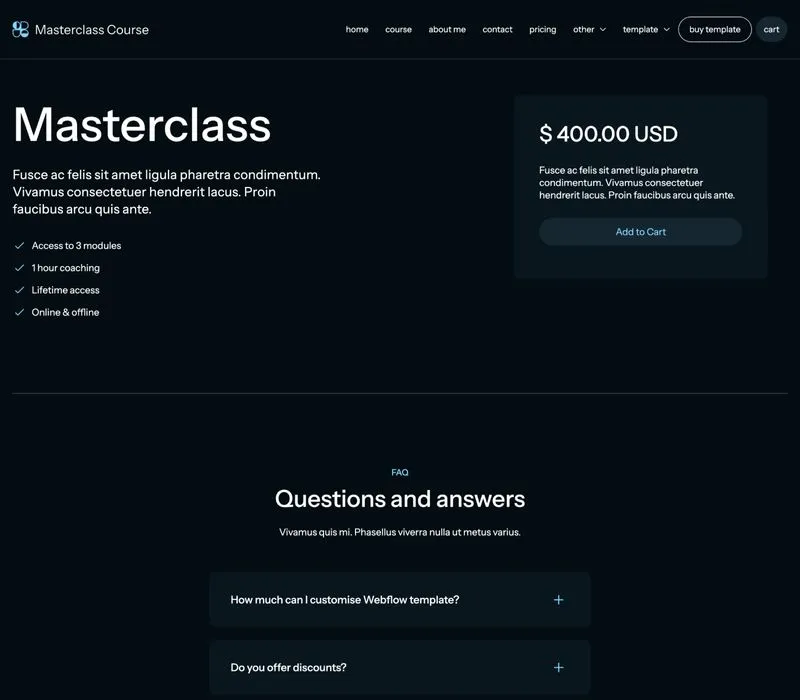 Masterclass Course includes features, blog and careers collections that are made on the powerful Webflow CMS. This will let you add new content extremely easily.